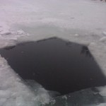 das fertig gesägte und vom Eis befreite Loch